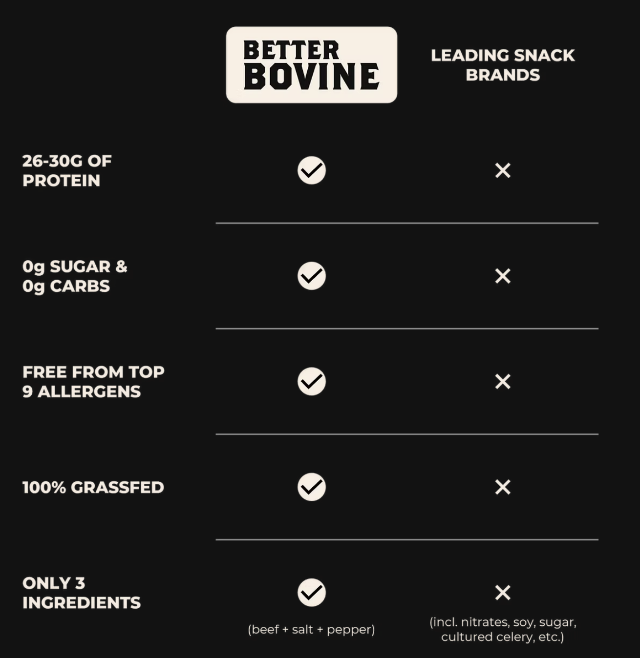 Our refined take on classic beef jerky. Extra lean, 100% grass-fed beef, seasoned with salt and pepper. Clean, satisfying, and packed with 30g protein.